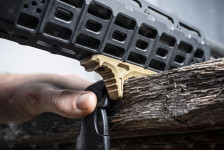 In polimero, dotata di aggancio M-Lok / Keymod.