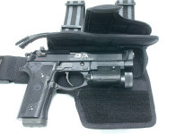 Regolabile per pistole accessoriate di laser o torcia, comprensivo di portacaricatore laterale.